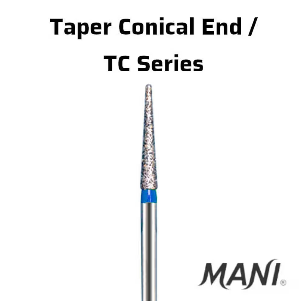 Mani Taper Conical End (TC) Series Diamond Burs with Regular Shank are sophisticated dental instruments crafted for precision and efficiency in a variety of dental procedures. Manufactured by Mani, a trusted name in dental products, these diamond burs are designed with meticulous attention to detail to meet the exacting standards of dental professionals.