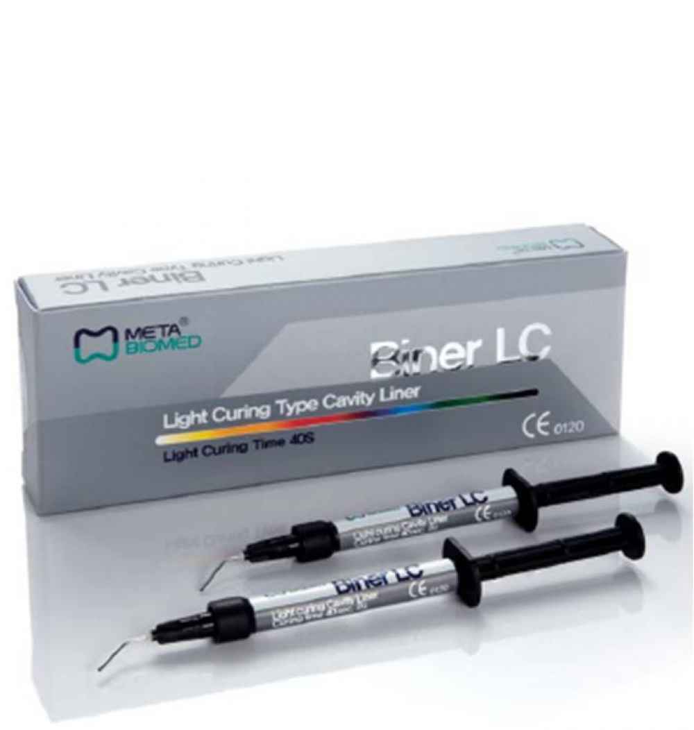 Biner LC is a light cure, fluoride releasing, radiopaque cavity liner and base material specially formulated for use with adhesives and composites and with conventional restorative materials.