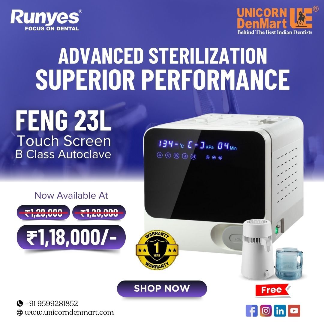 The Feng 23 L Touch Screen Autoclave is a cutting-edge sterilization device designed to meet the rigorous demands of medical and dental practices. This autoclave ensures efficient and reliable sterilization for various instruments, featuring a user-friendly touch screen, advanced chamber structure, and a high-capacity open tank. Its dual recording system provides comprehensive data logging, enhancing traceability and safety in clinical settings.