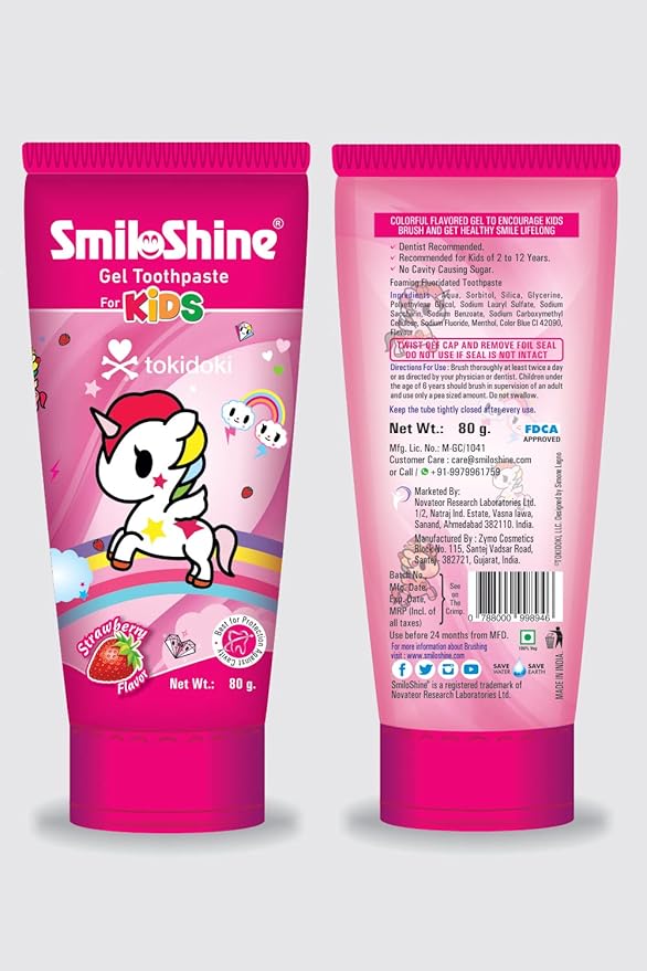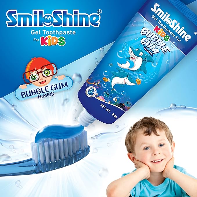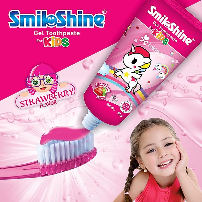 SmiloShine Unicorn Gel Toothpaste for Kids - Bubblegum Flavor and Strawberry ll Kids Toothpaste ll Bubblegum ll Strawberry ll 160 Gram ll Pack of 2 ll Bule and Pink (Bubblegum 1 +Strawberry 1)